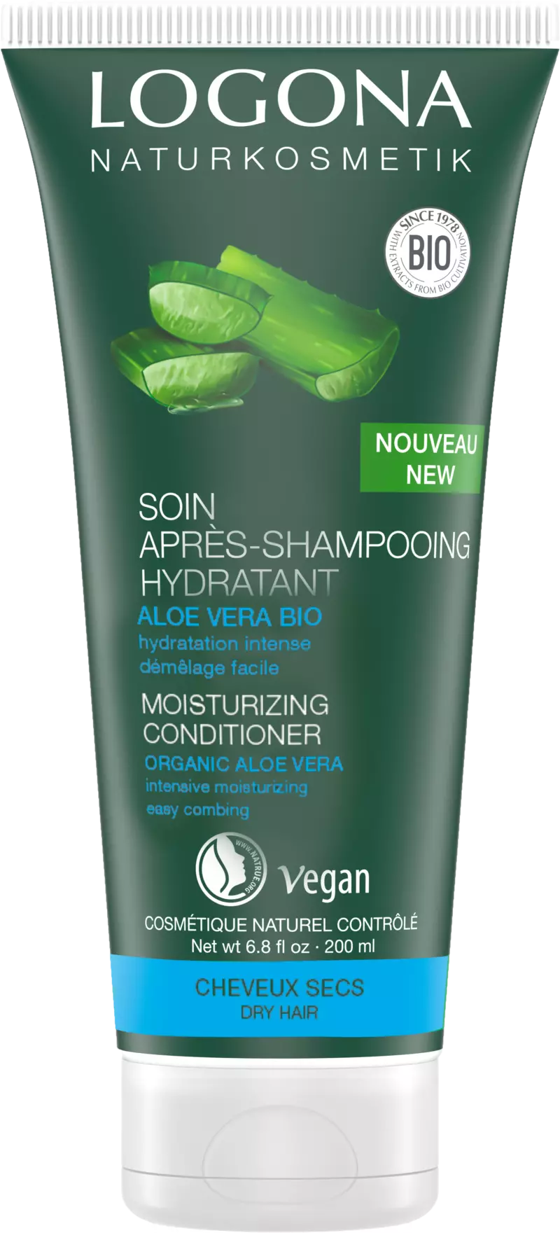 Découvrez le Soin Après-shampoing hydratant Aloe Vera Bio de Logona ! Cet après-shampooing hydrate les cheveux secs en profondeur. Sa formule vegan et naturelle est un véritable soin hydratant d’origine naturelle à l’aloe vera bio qui soigne et protège les cheveux du dessèchement. Il facilite le coiffage sans alourdir.